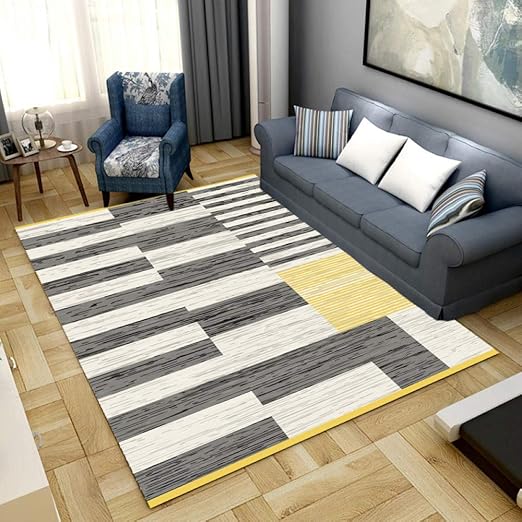 Teppich kurzflor grau schwarz weiß gestreift designer wohnzimmer rechteckig neu.